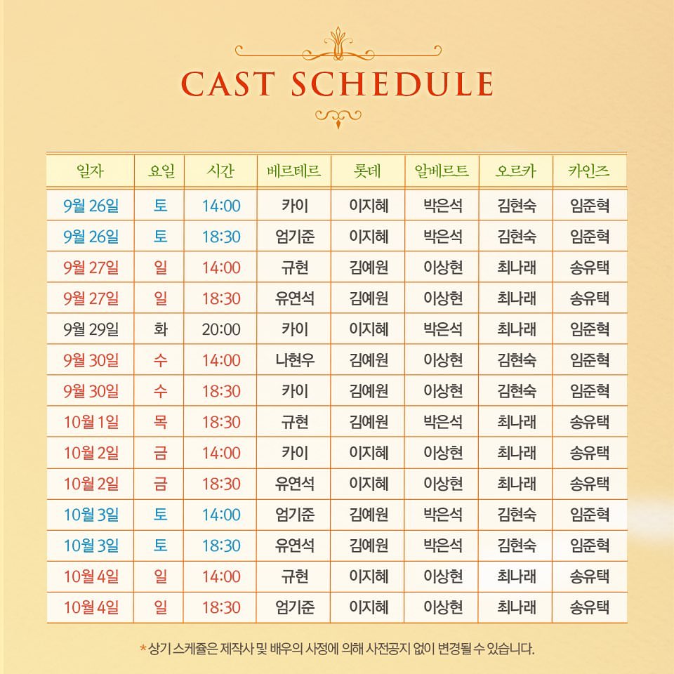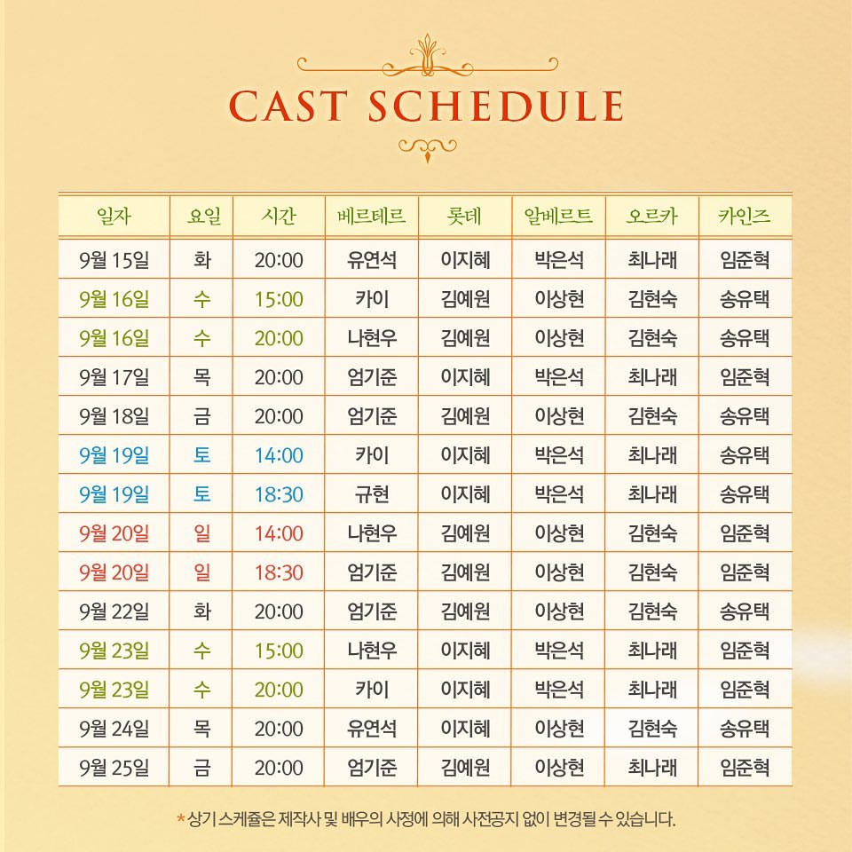 9월 30일 수요일과 10월 2일 금요일은 공연을 2회 차 진행한다. 추석 연휴 당일은 1회 차만 진행하는 데 평소 공연 시간과 달라졌으니 참고 바란다.