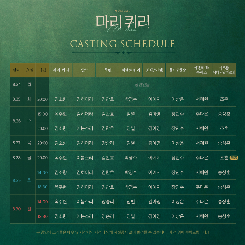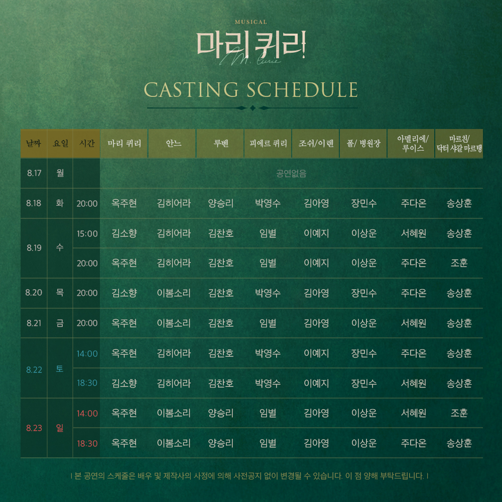 [캐스팅별 스케줄 표]