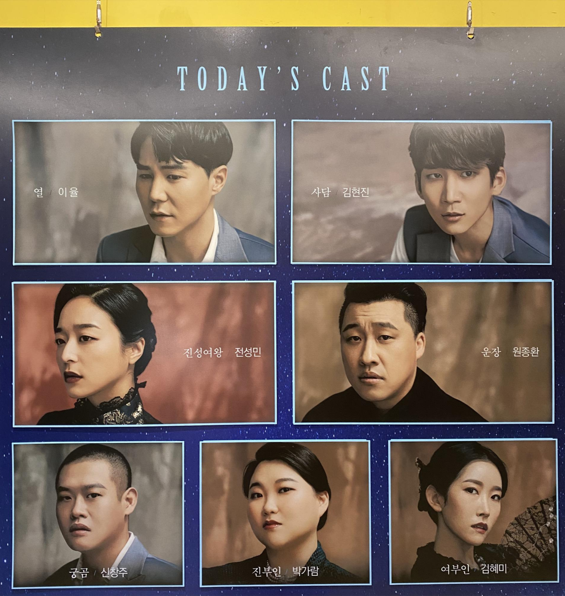 이 공연은 약간 유치하게 느껴질 수도 있는 소재인 것 같다. 예전에 즐겨 읽던 그리고 지금도 가끔 읽는 로맨스 판타지 소설과 비슷한 분위기라 생각했다. 남자들이 기생이고 권력자는 여성이고 그리고 약간의 동성애적인 소재가 있는... 나는 이렇게 느꼈는데 또 보는 사람들마다 다르게 느끼는 게 공연이니까 다른 사람의 의견도 궁금해졌다.