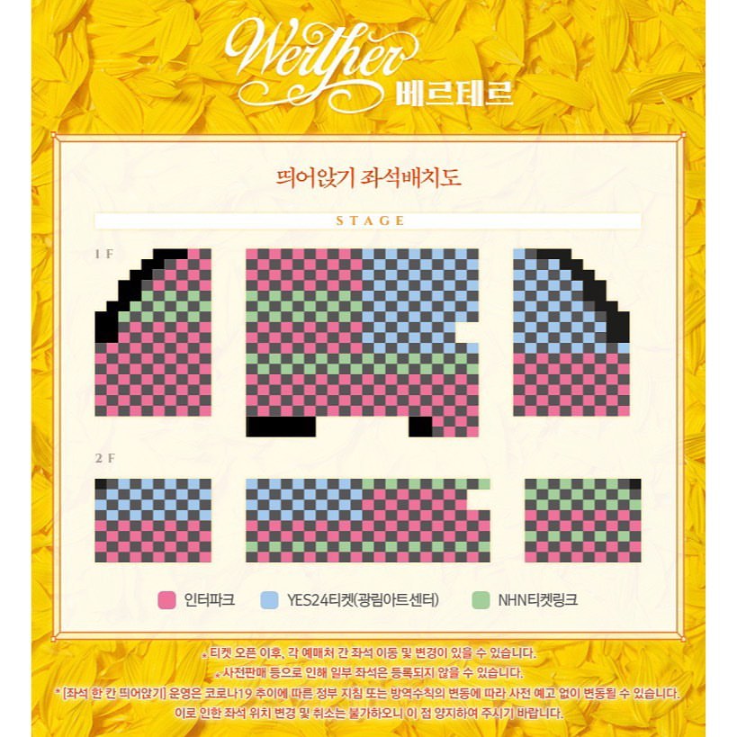 재오픈은 강제로 취소 된 사람들에 한해서 선예매를 할 수 있게 해 준다. 선예매는 각자가 예매를 한 예매처에서만 가능하고 선예매 대상자 안내 메시지를 받은 사람만 가능하다. 선예매 일시: 8월 27일 목요일 오후 2시. 재 오픈 공연 일시: 9월 1일 화요일 ~ 9월 6일 일요일. 조기 예매 할인을 받은 경우도 많았을 것이기 때문에 재오픈에 따른 전석 20% 할인을 적용할 수 있다. 예매처별 좌석 배치도는 위의 사진을 보면 확인이 가능하다. 원래 티켓링크의 좌석수가 제일 작았기 때문에 티켓 링크 예매자는 예매를 하기가 더 어려워졌다.