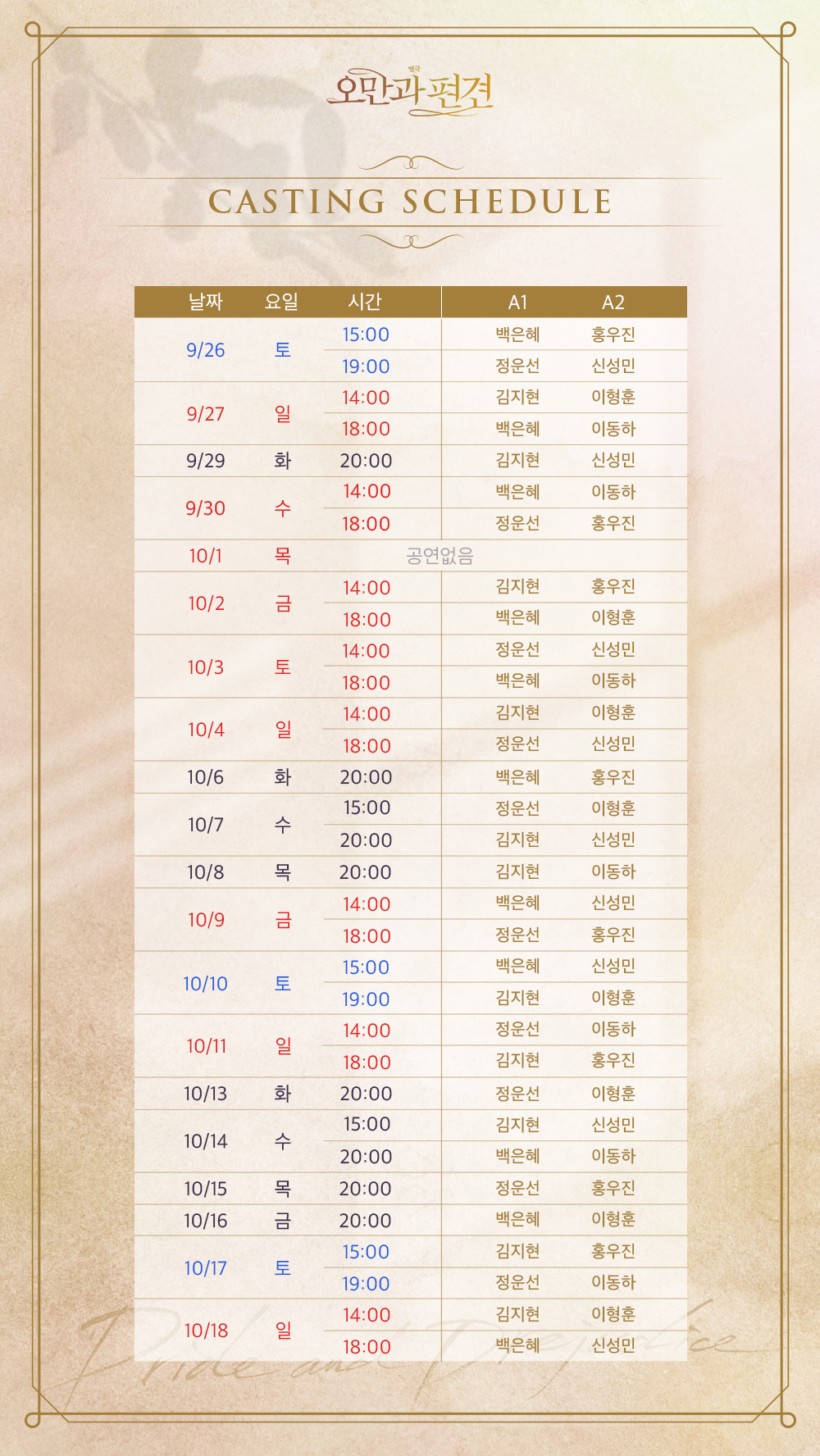 [캐스팅별 스케줄]